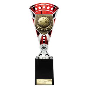 Cobra Star Cup Basketball Silver & Red 255mm – Engraving plate area: 75x55mm