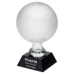 CLEAR GLASS GOLF BALL ON BLACK BASE – (4″ DIA) 6.5in