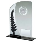 JADE GLASS PLAQUE WITH BLACK/SILVER DETAIL WITH PLATE (1in CENTRE) – 8in