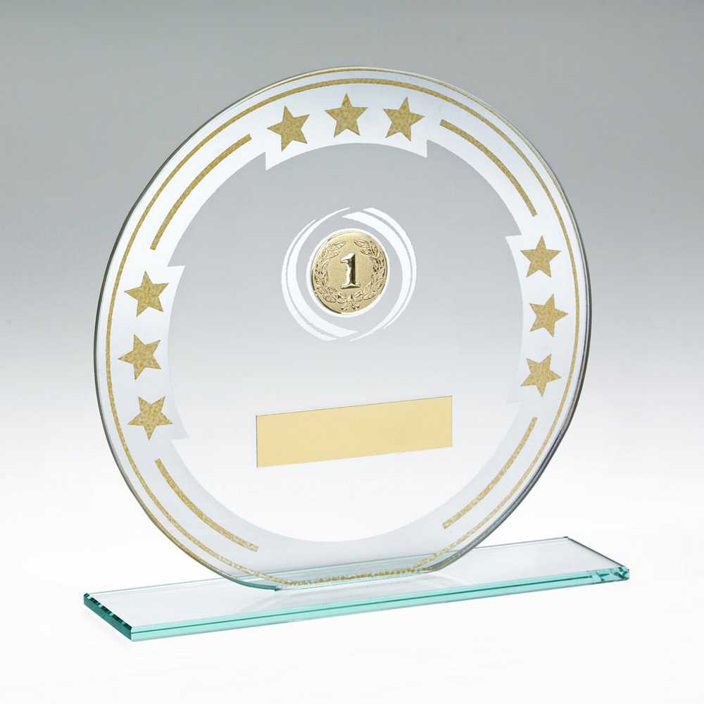 JADE ROUND GLASS WITH SILVER/GOLD DETAIL AND PLATE (1in CENTRE) – 7in