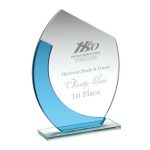 JADE/BLUE GLASS OVAL PLAQUE WITH ANGLED TOP – (4mm THICK) 5.5in
