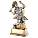 BRZ/GOLD/PEW FEMALE TENNIS FIGURE WITH STAR BACKING WITH PLATE (1in CENTRE) – 9″
