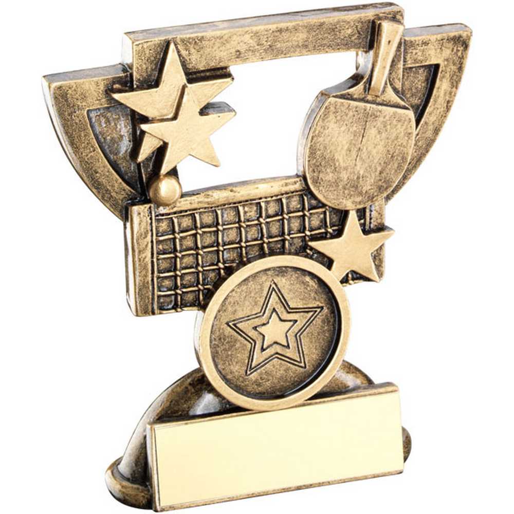 BRZ/GOLD TABLE TENNIS MINI CUP WITH PLATE (1in CENTRE) – 3.75in
