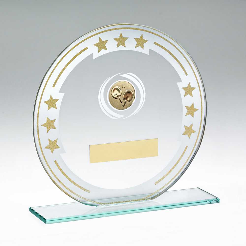 JADE/SILVER/GOLD ROUND GLASS WITH TABLE TENNIS INSERT AND PLATE – 7in